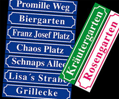 Straßennamen, Garten- und Zonenbenennungen. Oder als schelmische